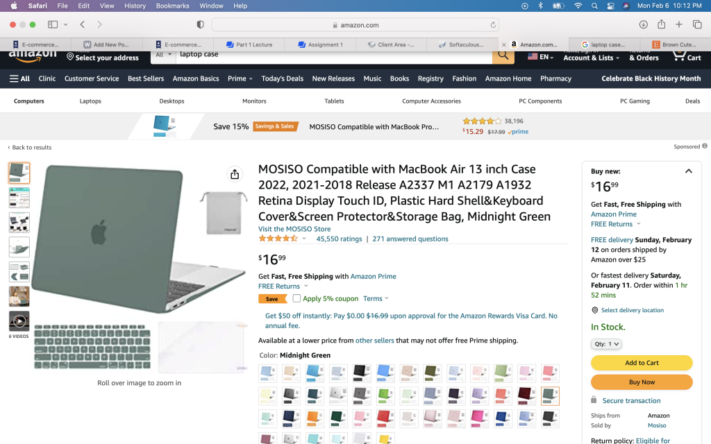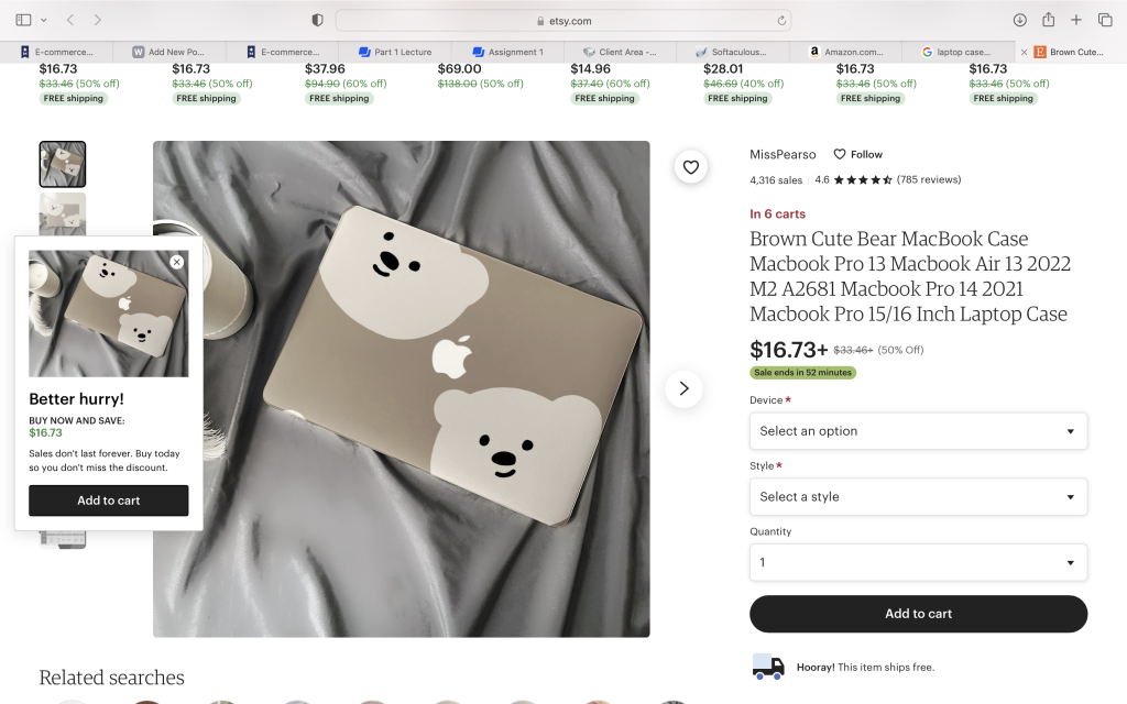 3. laptop case, Amazon is $16.99, Etsy is $16.73.